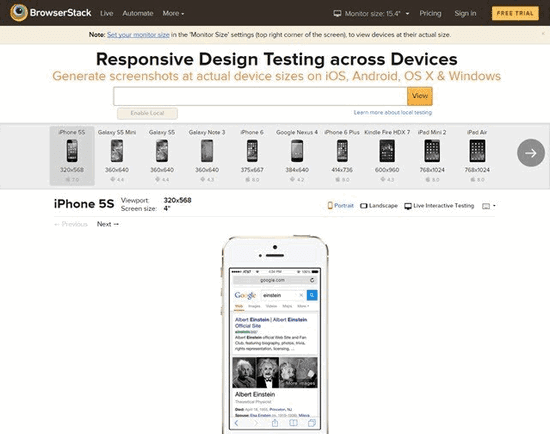 BrowserStack adalah alat memberi informasi dengan benar mengenai bagimana situs Anda terlihat di setiap perangkat mobile. Dalam kebanyakan kasus alat ini sangat membantu untuk memuat situs Anda di setiap perangkat. BrowserStack layanan penguji mobile-friendly berbayar.