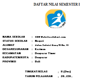 Websiteedukasi.com – Download Format Daftar Nilai Harian Kelas II SD/MI Semester 1 dan 2 Kurikulum 2013.
