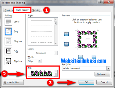 3. Kemudian akan muncul pop up laman baru, pilih page border, lalu pilih Art