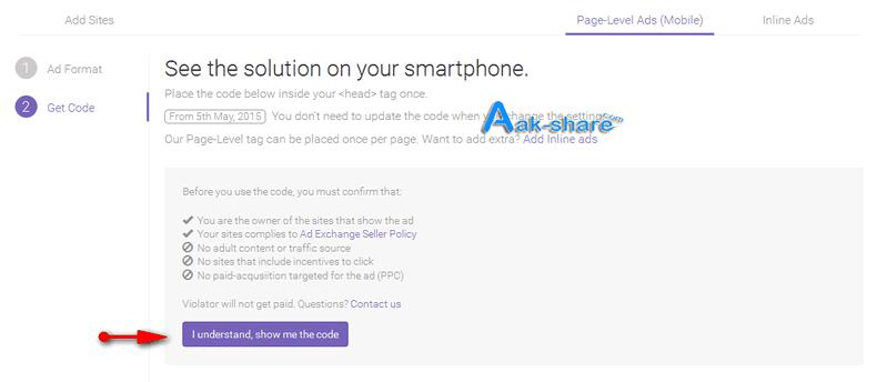7. Selanjutnya Anda scroll kebawah klik tombol I Understand, show me the code.