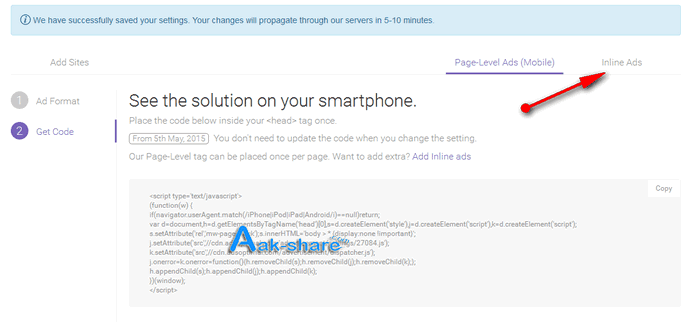 5. Selanjutnya klik tombol Inline Ads terletak dipojok kanan atas layar (tanda panah warna merah).