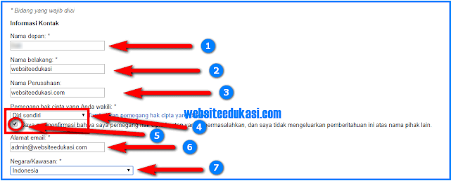 4. Pemegang hak cipta yang Anda wakili: pilih Diri sendiri
