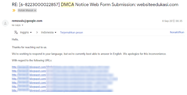 Demikian Cara Melaporkan Artikel Copy Paste Ke Google DMCA yang dapat saya sampaikan, semoga bermanfaat untuk kita semua. Terima kasih.