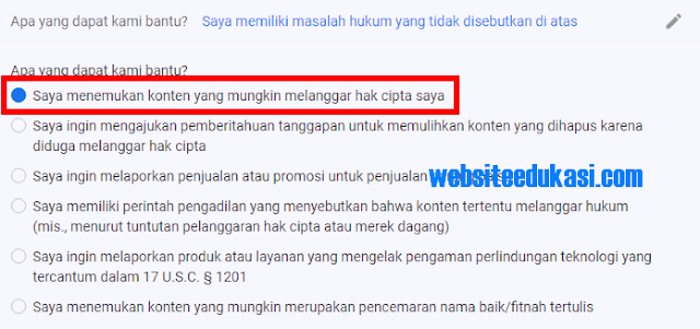 8. Maka anda akan di bawah ke halaman Laporkan dugaan pelanggaran hak cipta. Silahkan isi formulirnya, caranya sebagai berikut: