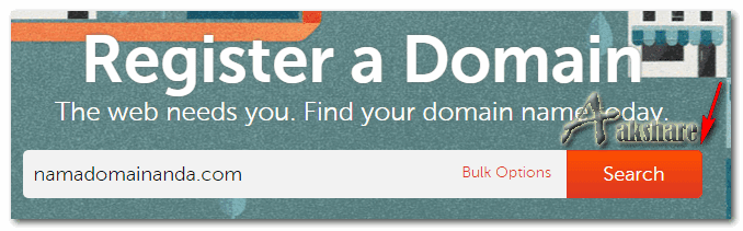 Kedua : Regisistrasi nama Domain Anda, dengan cara ketikan nama Domain Anda lalu Search