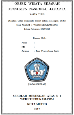 Karya Tulis biasanya di buat peserta didik kelas 9/ IX dan Kelas 12/ XII menjelang berakhirnya tahun pelajaran. Karya Tulis ini saya buat untuk adik saya, dan saya dengan senang hati membagikan Karya Tulis Objek Wisata Sejarah Monumen Nasional (Monas) ini kepada adik-adik semua.
