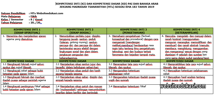 KI KD Fikih Kelas 8 MTs ini terdiri dari semester 1 dan 2 yang dapat anda gunakan untuk melengkapi perangkat pembelajaran di tahun ini.