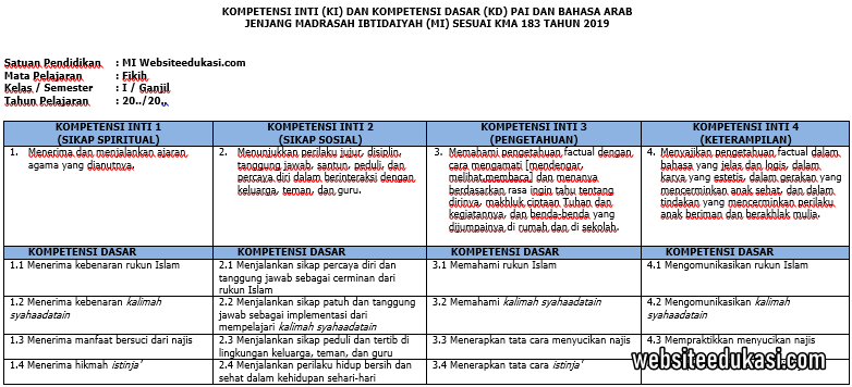Websiteedukasi.com – Download KI KD Fikih Kelas I, II, III, IV, V dan VI MI Terbaru untuk tahun Ajaran 2020/2021.