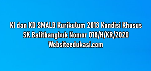 KI dan KD SMALB Kondisi Khusus SK Balitbang No. 018/H/KR/2020 di tetapkan untuk melaksanakan kebijakan mengenai kurikulum yang sesuai dengan kebutuhan pembelajaran bagi peserta didik dalam kondisi khusus berdasarkan Kepmendikbud Nomor 719/P/2020 tentang Pedoman Pelaksanaan Kurikulum pada Satuan Pendidikan dalam Kondisi Khusus.