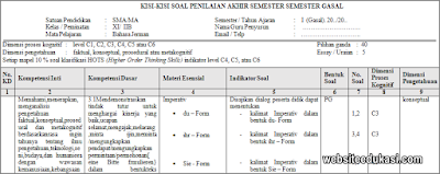 Pada postingan ini saya akan share Kisi-Kisi Soal Penilaian Akhir Semester (PAS)/ Ulangan Akhir Semester (UAS) Mata Pelajaran Bahasa Jerman Kelas XI jenjang SMA/MA Semester 1 Kurikulum 2013 Tahun Pelajaran 2019/2020 yang tentunya bisa anda unduh secara gratis.