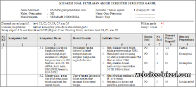 Websiteedukasi.com – Kisi-Kisi PAS / UAS Sejarah Indonesia Kelas 12 Tahun 2019/2020. Kisi-kisi Soal Penilaian Akhir Semester Sejarah Indonesia Kelas XII merupakan kerangka dasar yang dibuat untuk tindak lanjut dalam penyusunan soal ujian. Kisi-kisi soal disusun dengan tujuan untuk memberi gambaran tentang bentuk soal dan materi yang akan diujikan. Dengan adanya Kisi-kisi ini peserta didik dapat mempelajari materi pelajaran yang akan di ujikan.