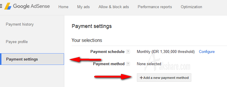 Untuk seting metode pembayaran Google Adsense, maka kita harus mengubah setelan pembayaran di dashboard adsense. Caranya …