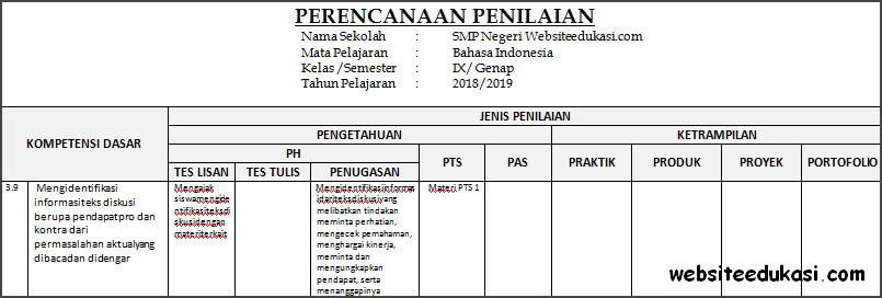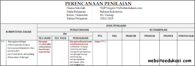 Perencanaan Penilaian Bahasa Indonesia Kelas 9 Semester 2.doc, Unduh
