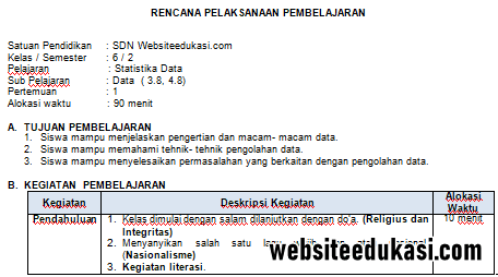 RPP 1 Lembar Matematika Kelas 6 Tema 8 – Data.doc, Unduh
