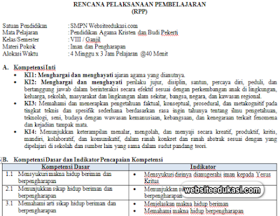 Websiteedukasi.com – RPP Pendidikan Agama Kristen dan Budi Pekerti Kelas 8 SMP/MTs Semester 1 dan 2 Kurikulum 2013 Revisi 2019/2020. Halo sobat websiteedukasi, pada postingan ini kami akan share Rencana Pelaksanaan Pembelajaran (RPP) PAK dan BP Kelas VIII jenjang SMP/MTs Kurikulum 2013 Revisi 2019 kepada teman-teman guru secara gratis.