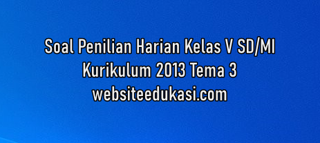 Websiteedukasi.com, Soal Penilaian Harian – Soal PH Kelas V SD/MI Tema 3 merupakan soal evaluasi diri untuk menguji kemampuan peserta didik dalam memahami materi pelajaran yang sudah di sampaikan dalam kegiatan belajar mengajar di kelas.