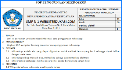 Websiteedukasi.com, SOP Penggunaan Mikroskop Terbaru – Halo sobat websiteedukasi, pada postingan ini saya akan berbagi SOP (Standar Opeasional Prosedur) Penggunaan Mikroskop Terbaru jenjang SMP, SMA, SMK yang bisa anda unduh secara gratis.
