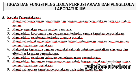 Websiteedukasi.com – Download dokumen Tugas Pokok dan Fungsi (Tupoksi) Pengelola Perpustakaan dan Laboratorium Sekolah/Madrasah.